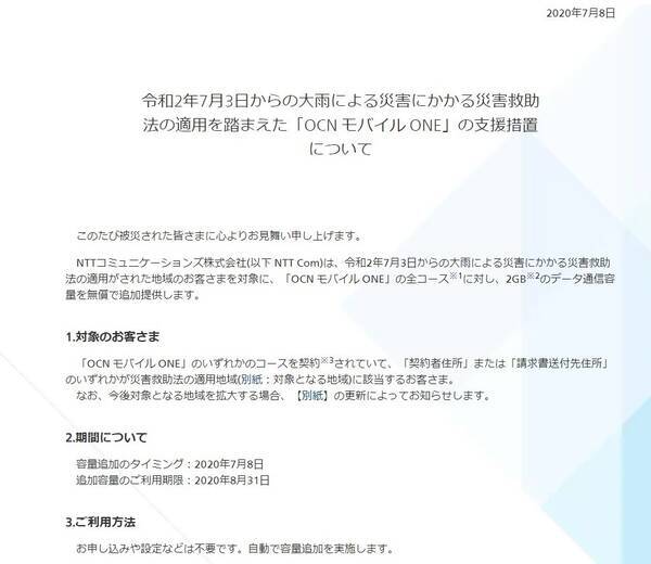 Ocnモバイルone 7月3日からの大雨で被災した利用者に2gbのデータ通信を提供 2020年7月8日 エキサイトニュース